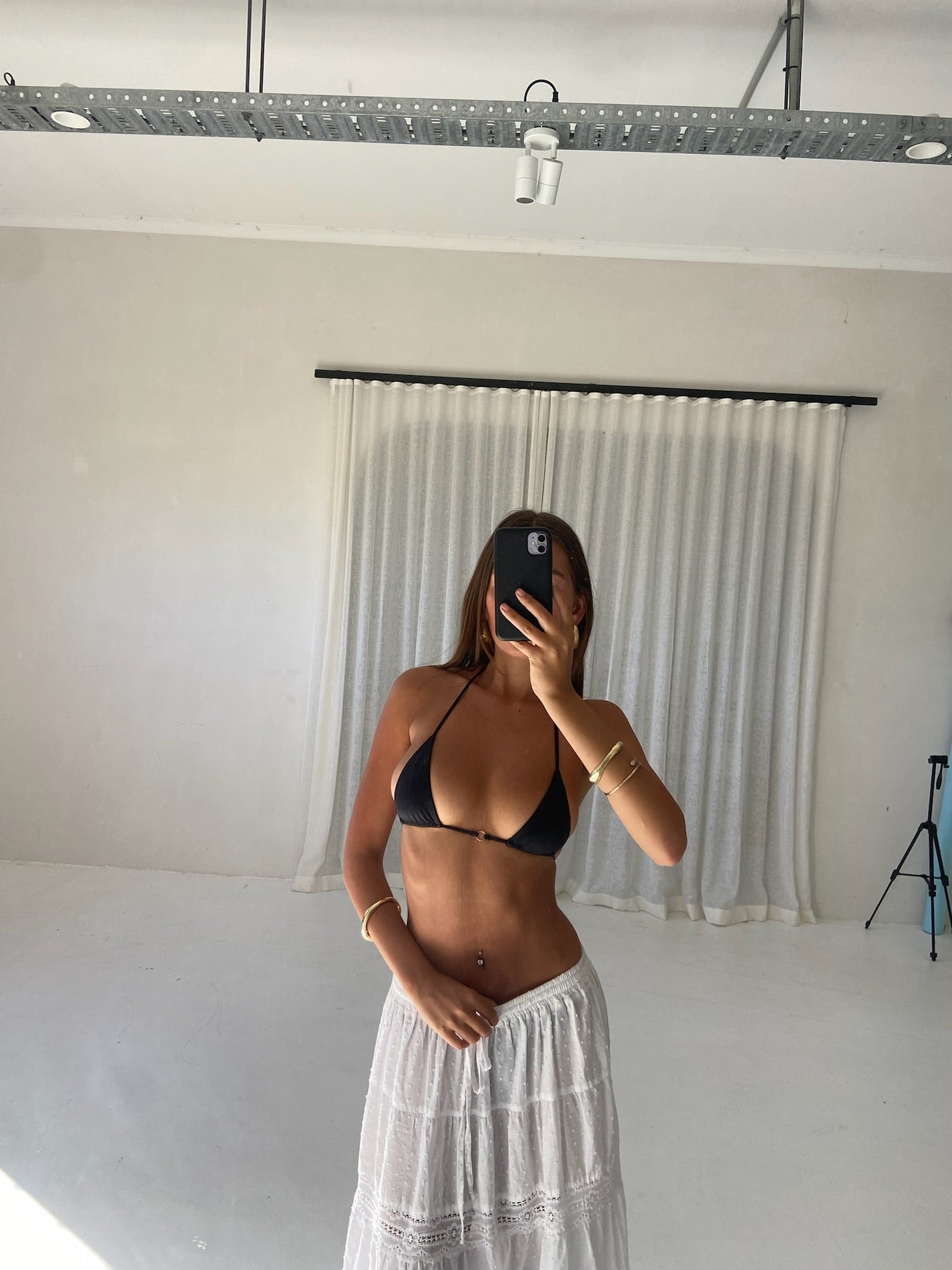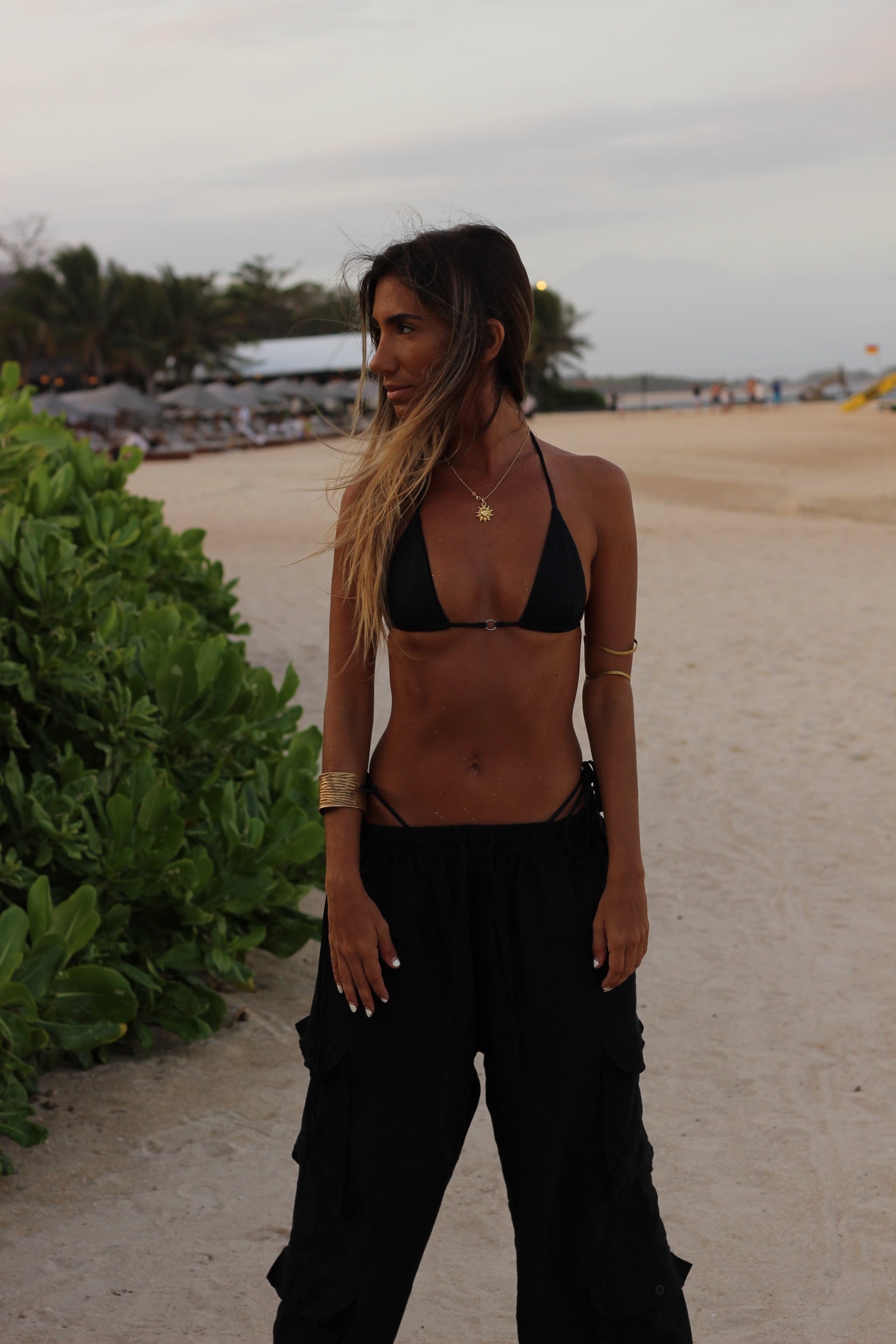 Adorned with silver rings and metal beads, the Gaia swim top is handmade from ECONYL® - an innovative fabric that repurposes waste into high-quality materials, elevating luxury.