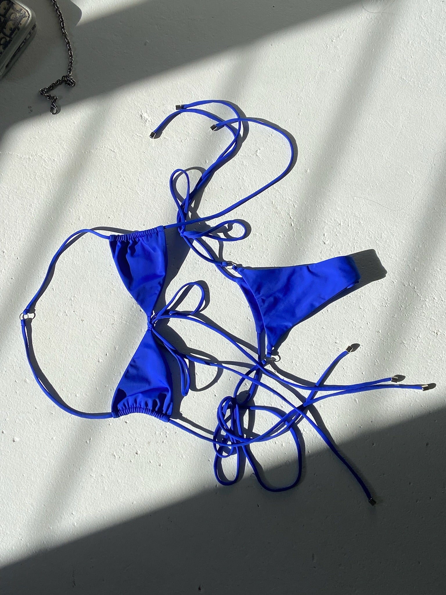 Similar to the classic Mae bottoms, this version features a skimpier thong cut. Adorned with silver rings and metal beads, it is handmade from ECONYL® - an innovative fabric that repurposes waste into high-quality materials, elevating luxury.